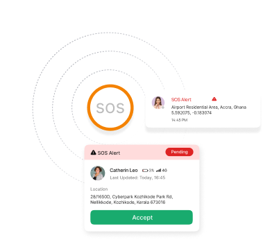Press to send alerts in real-time with the complete location details to the dashboard and response teams for emergency assistance.